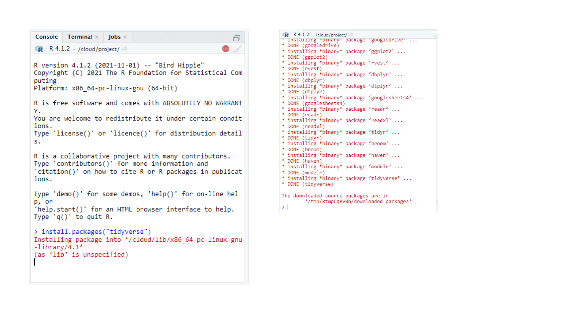 install.packages("tidyverse")「DONE {tidyverse}」が表示されれば完了です!