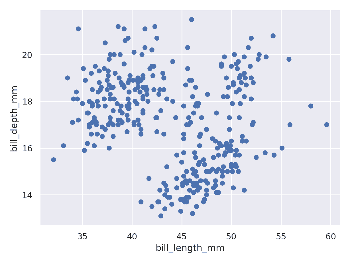 so.Plot(penguins, x="bill_length_mm", y="bill_depth_mm")